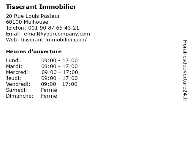1 Boucherie Tisserant William (Distance: 48,32 km) 1262 Route de Colmar, 88400 Xonrupt-Longemer boucherie, tisserant, william 2 Boucherie Tisserant (Hors vacances scolaires) (Distance: 48,33 km) 1262 route de Colmar, 88400 Xonrupt Longemer boucherie, charcuterie, hors, scolaires, tisserant, traiteur, vacances 3 Dr Hélène Tisserant - Médecin généraliste (Distance: 49,91 km) 18A Boulevard Adolphe Garnier, 88400 Gérardmer docteur, dr, generaliste, généraliste, hélène, medical, médecin, soin, tisserant 4 HoplaDiags (Distance: 0,19 km) 28 Rue du Sauvage, 68100 Mulhouse amiante, diagnostic, expertise, hopladiags, immobilier, électricité 5 A Cause des Garçons (Distance: 0,25 km) - Cour des Maréchaux, 68100 Mulhouse accessoires, cause, chaussures, des, féminins, garçons, porter, prêt, vente 6 Immobilière Bartholdi (Distance: 0,31 km) 12 rue du Couvent, 68200 Mulhouse agence, bartholdi, gestion, immobilier, immobilière, location, vente |