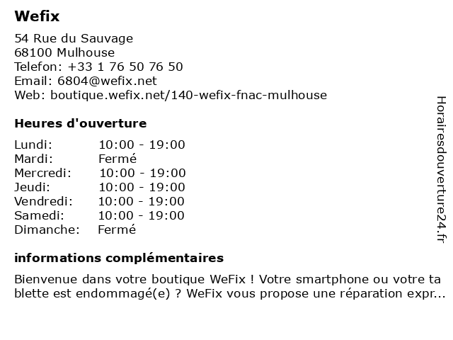 4 Wefix (Distance: 42,18 km) S.n Rue du Buhlfeld, 68019 Houssen des tables, réparation, service, téléphone, wefix |