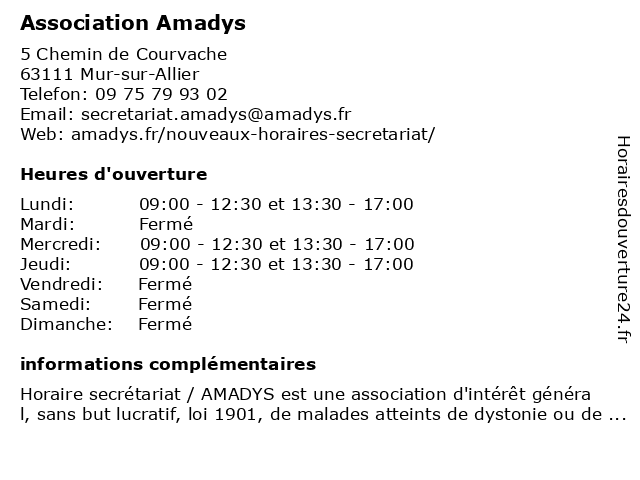| Lundi | 09:00-12:30 et 13:30-17:00 |