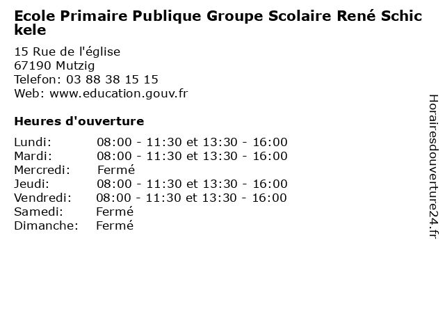 | Mardi | 08:00-11:30 et 13:30-16:00 |