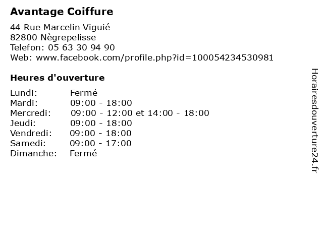 | Mercredi | 09:00-12:00 et 14:00-18:00 |