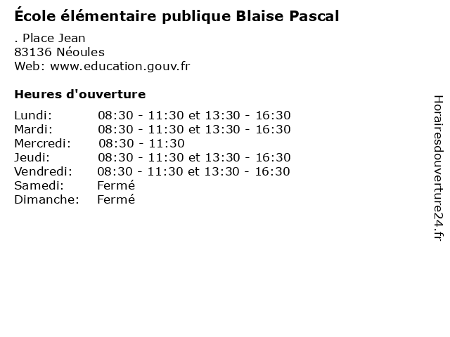 | Mardi | 08:30-11:30 et 13:30-16:30 |