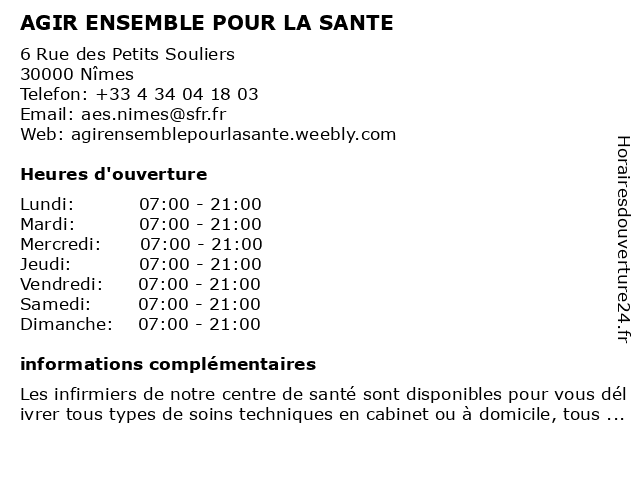 1 AFEV - Association de la fondation étudiante pour la ville (Distance: 0,60 km) 7 Place de l’Oratoire, 30900 Nîmes activités, afev, association, centre, club, de, fondation, la, pour, ville, étudiante 2 Association Léo Lagrange pour la Défense des Consommateurs (Distance: 0,66 km) 10 Rue Hugues Capet, 30900 Nîmes association, consommateur, consommateurs, des, droits, défense, la, lagrange, léo, pour 3 Groupement pour la Pratique du Yoga (Distance: 0,75 km) 7 Rue de la Casernette, 30900 Nîmes du, groupement, la, pour, pratique, yoga 4 Cabinet AGIR (Distance: 1,07 km) 16 rue de Verdun, 30900 Nîmes agence, agir, cabinet, gestion, immobilier, location, transaction 5 Massage Pour Bébé (Distance: 1,54 km) 16 Rue Paul Soleillet, 30900 Nîmes bébé, massage, massages, pour, pour bebes, relaxation, santé, thérapies 6 Plateforme d'accompagnement et de répit pour les aidants de personnes âgées - Nîmes (Distance: 1,81 km) 840 rue Roger-Bertrand, 30000 Nîmes administration, aidants, d'accompagnement, de, et, les, nîmes, organismes, personnes, plateforme, pour, publics, répit, services, âgées |