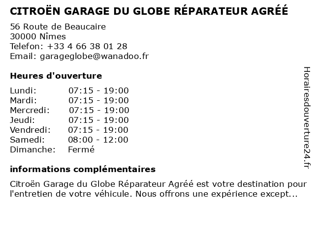 1 Garage du Globe - Citroën (Distance: 0,98 km) 20 boulevard Natoire, 30000 Nimes automobile, citroën, du, entretien, garage, globe, neuf, occasion, réparation, vente, vidange 2 Garage Nimes Courbessac - Citroën (Distance: 3,25 km) 110 chemin de l'Aérodrome, 30000 Nimes automobile, citroën, courbessac, entretien, garage, neuf, nimes, occasion, réparation, vente, vidange 3 FAAC ICM Sinetyc Automaticien Agréé (Distance: 4,08 km) 4 Av. Philippe Lamour ZAC Actiparc, 30230 Bouillargues agréé, automaticien, faac, icm, sinetyc 4 Citroën K2 Auto (Horaires Généraux) (Distance: 4,42 km) 2290 Route de Montpellier, 30900 Nimes auto, citroën, generaux, généraux, horaires, k2, services, véhicules 5 Citroën K2 Auto (Véhicules Neufs/d'Occasions) (Distance: 4,42 km) 2290 Route de Montpellier, 30900 Nimes auto, citroën, k2, neuf/d'occasion, neufs/d'occasions, services, vehicule, véhicules 6 Citroën K2 Auto (Pièces de Rechange) (Distance: 4,42 km) 2290 Route de Montpellier, 30900 Nimes auto, citroën, de, k2, piece, pièces, rechange, services, véhicules |
