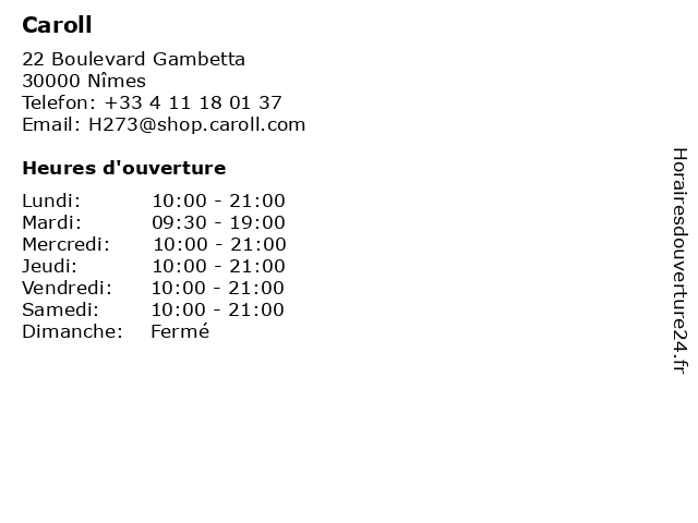 | Mercredi | 10:00-21:00 |