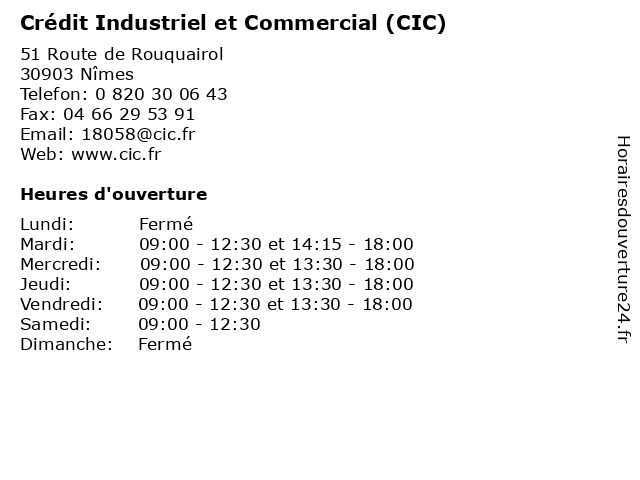 | Mercredi | 09:00-12:30 et 13:30-18:00 |