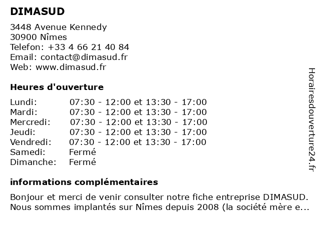 | Vendredi | 07:30-12:00 et 13:30-17:00 |
