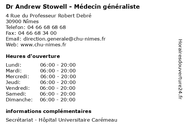 1 Andrew's (Distance: 2,93 km) 18 rue de l'Horloge, 30000 Nîmes andrew's, chemises, mode, pantalons, qualite, vetements 3 Dr Julie Bernard - Médecin généraliste (Distance: 0,00 km) 4 Rue du Professeur Robert Debré, 30900 Nîmes bernard, consultation, docteur, dr, généraliste, julie, med, médecin, traitement 4 Dr Thierry Bonjour - Médecin généraliste (Distance: 0,00 km) 4 Rue du Professeur Robert Debré, 30900 Nîmes bonjour, consultation, docteur, dr, généraliste, med, médecin, thierry, traitement 5 Dr Julien Gambier - Médecin généraliste (Distance: 0,00 km) 4 Rue du Professeur Robert Debré, 30900 Nîmes consultation, docteur, dr, gambier, généraliste, julien, med, médecin, traitement 6 Dr Sophie Bregier - Médecin généraliste (Distance: 0,26 km) - Rue de Professeur Henri Pujol, 30900 Nimes bregier, consultation, docteur, dr, généraliste, med, médecin, médecine, sophie, traitement |
