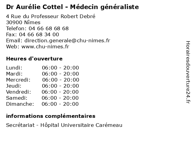 | Mercredi | 06:00-20:00 |