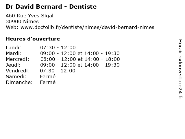 | Mardi | 09:00-12:00 et 14:00-19:30 |