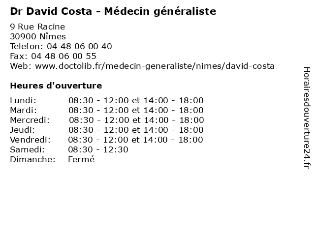 | Lundi | 08:30-12:00 et 14:00-18:00 |