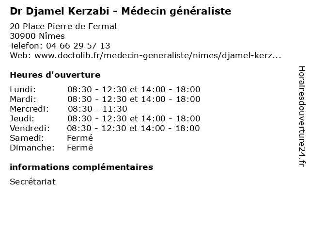 | Lundi | 08:30-12:30 et 14:00-18:00 |