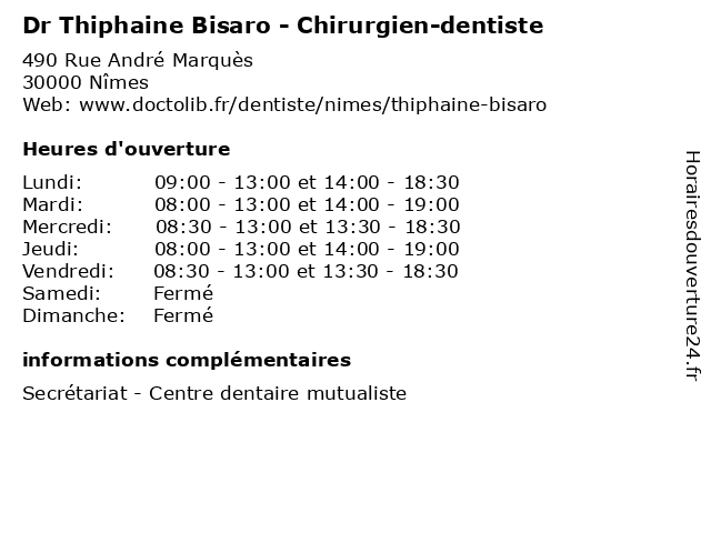 | Lundi | 09:00-13:00 et 14:00-18:30 |