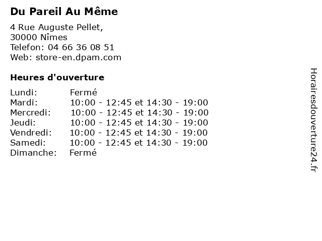 | Mardi | 10:00-12:45 et 14:30-19:00 |