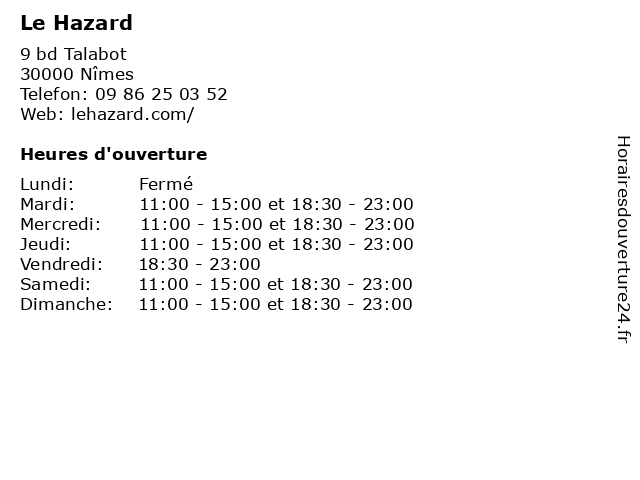| Mardi | 11:00-15:00 et 18:30-23:00 |