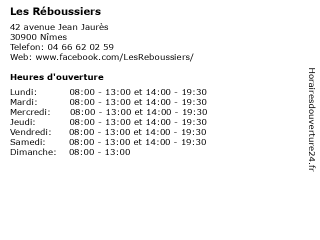 | Mardi | 08:00-13:00 et 14:00-19:30 |