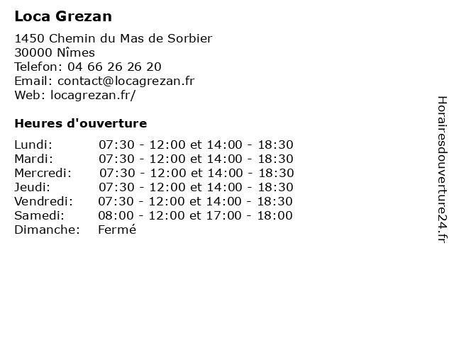 | Lundi | 07:30-12:00 et 14:00-18:30 |