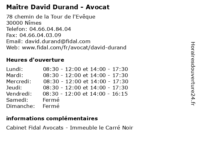 | Lundi | 08:30-12:00 et 14:00-17:30 |