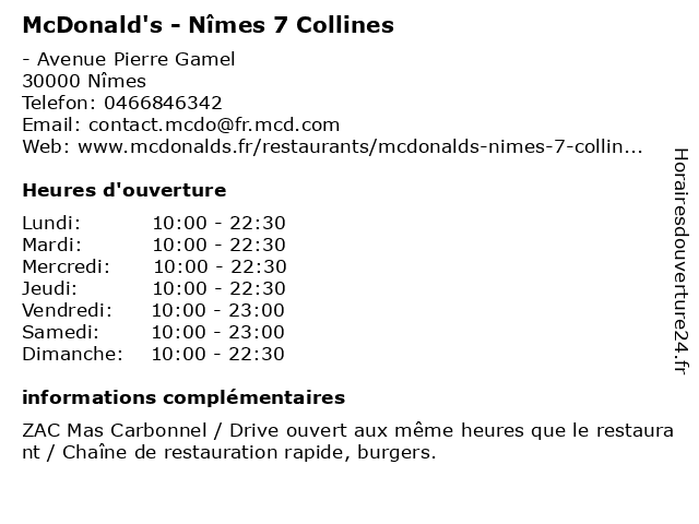 Termes de recherche pour McDonald's - Nîmes 7 Collines:restauration, restaurant, mcdonald's, nimes, fast, food, rapide, burgers, hamburgers, collines |