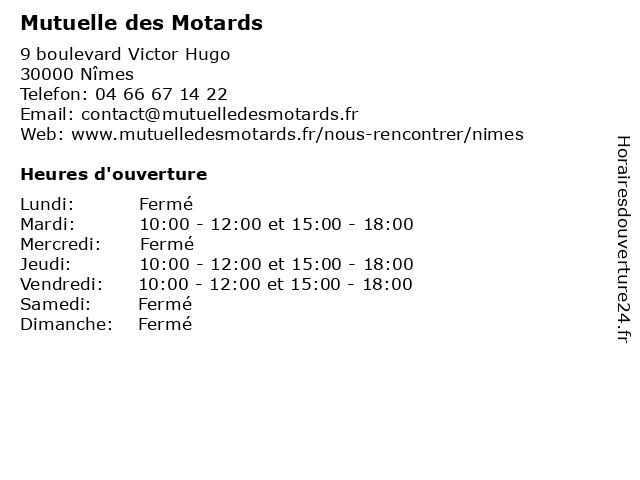 1 Ma Nouvelle Mutuelle (Distance: 0,05 km) 38 Boulevard Victor-Hugo, 30020 Nimes assurance, ma, mutuelle, nouvelle, prévoyance, sante, services 2 Mutuelle Intériale (Distance: 0,07 km) 20 Boulevard Victor Hugo, 30000 Nimes assurance, habitation, intériale, mutuelle, protection, pévoyance, santé 3 Adrea Mutuelle (Distance: 0,28 km) 1 Boulevard Alphonse Daudet, 30000 Nîmes adrea, assurance, mutuelle, prévoyance, sante, services 5 Viasanté - Mutuelle AG2R (Distance: 0,42 km) 1 boulevard de l Amiral Courbet, 30000 Nimes ag2r, agence, mutuelle, viasanté 6 MEP - Mutuelle Etudiante de Proximité (Distance: 0,59 km) 17 Rue de la Porte d' Alès, 30000 Nimes assurance, de, etudiante, habitat, mep, mutuelle, protection, proximité, santé, étudiants |