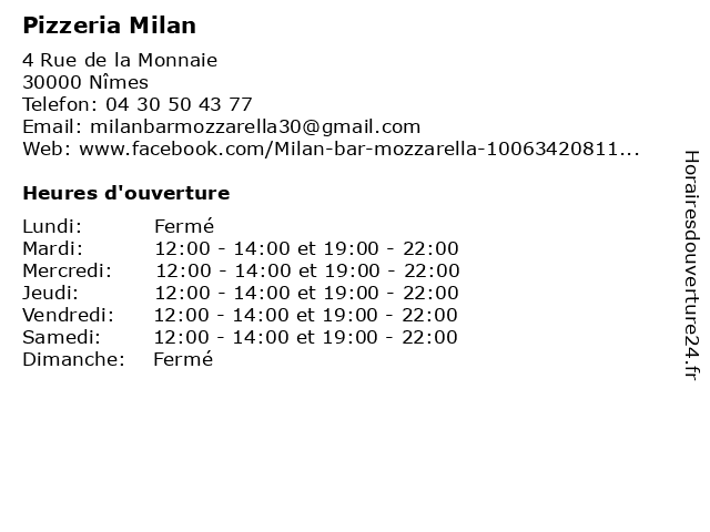 | Mardi | 12:00-14:00 et 19:00-22:00 |