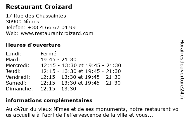 1 Restaurant Vincent Croizard (Distance: 0,00 km) 17 Rue Des Chassaintes, 30900 Nîmes affaires, croizard, produit, restaurant, restaurateur, service, vincent |