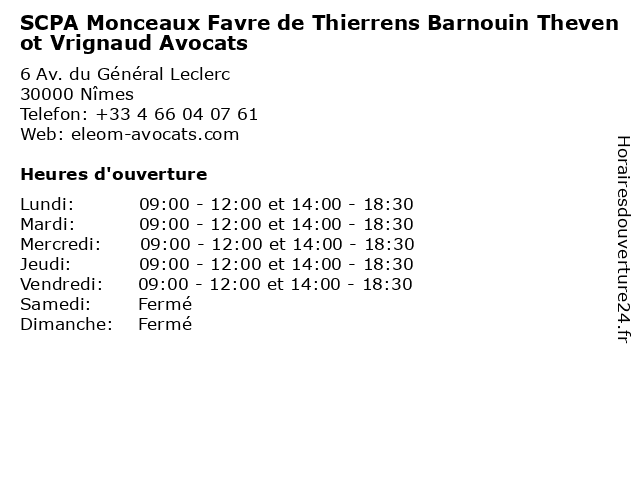 | Lundi | 09:00-12:00 et 14:00-18:30 |