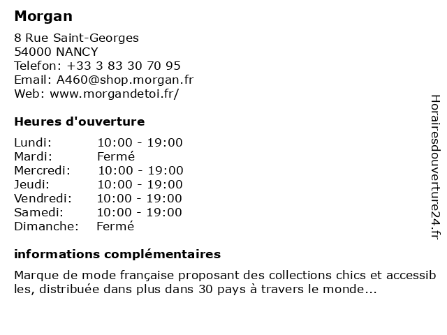 1 Morgan (Distance: 0,18 km) Rue Saint-Julien, 54000 Nancy blazer femme, cardignan femme, chaussures femme, gilet femme, jean femme, magasin femme, magasin vêtements, manteau femme, mode femme, morgan, pull femme, robe femme, sac femme, t-shirt femme, tailleur femme, top femme, vêtements femmes 3 Morgan (Distance: 0,49 km) 2 Avenue Foch, 54008 Nancy blazer femme, cardignan femme, chaussures femme, gilet femme, jean femme, magasin femme, magasin vêtements, manteau femme, mode femme, morgan, pull femme, robe femme, sac femme, t-shirt femme, tailleur femme, top femme, vêtements femmes 4 Morgan (Distance: 5,18 km) . Route 570, 54180 Houdemont cafe, chaussures, enfants, homme, mode femme, morgan, restaurant, service 5 Morgan (Distance: 5,60 km) Allée de la Genelière, 54180 Houdemont blazer femme, cardignan femme, chaussures femme, gilet femme, jean femme, magasin femme, magasin vêtements, manteau femme, mode femme, morgan, pull femme, robe femme, sac femme, t-shirt femme, tailleur femme, top femme, vêtements femmes 6 Zapa (Distance: 0,16 km) 17 Rue Saint Dizier, 54000 Nancy branché, femme, homme, jeans, manteau, mode, vêtements, zapa |