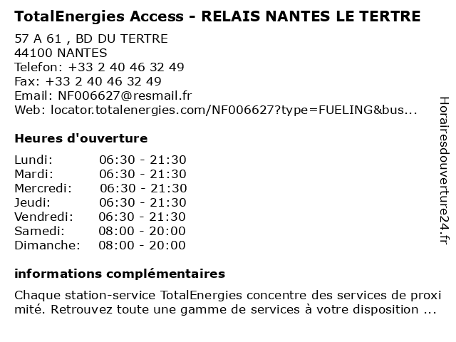 Termes de recherche pour TotalEnergies Access - RELAIS NANTES LE TERTRE:relais, le, nantes, access, total, tertre, gas station, station service, tankstelle, totalenergies |