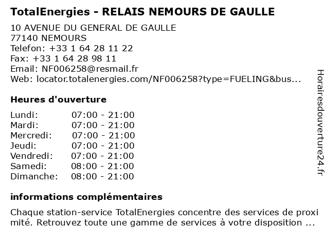 Termes de recherche pour TotalEnergies - RELAIS NEMOURS DE GAULLE:relais, de, nemours, gaulle, total, gas station, station service, tankstelle, totalenergies |