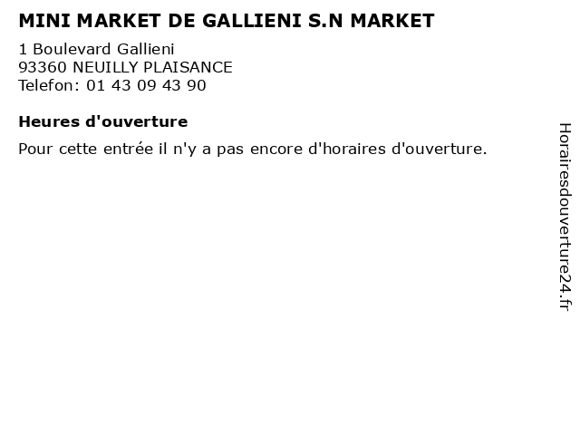 | Appeler MINI MARKET DE GALLIENI S.N MARKET | |