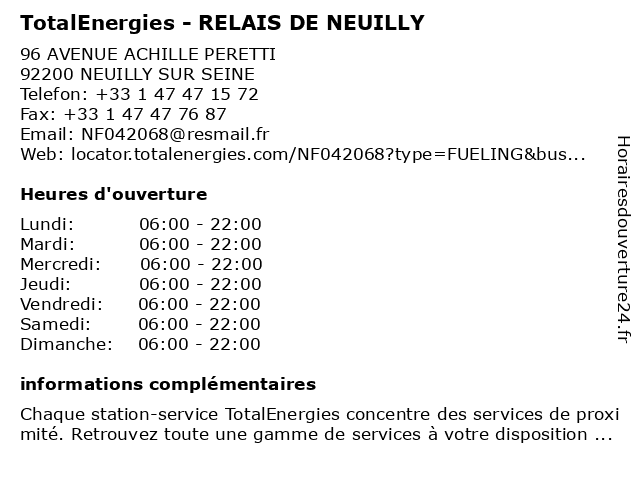 Termes de recherche pour TotalEnergies - RELAIS DE NEUILLY:relais, de, neuilly, total, gas station, station service, tankstelle, totalenergies |