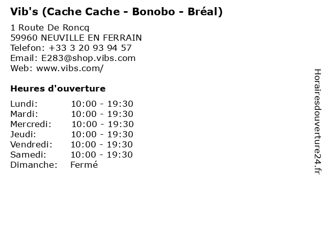 1 Vib's (Cache Cache - Bonobo - Bréal) (Distance: 1,02 km) 1 Route de Roncq, 59960 Neuville-en-Ferrain bonobo, bréal, cache, vib's 2 Vib's (Cache Cache - Bonobo - Bréal) (Distance: 14,58 km) 111 Boulevard De Valmy, 59650 VILLENEUVE D'ASCQ blazer femme, bonobo, boutique vêtement, bréal, cache, cardignan femme, chaussures femme, gilet femme, jean femme, jean homme, magasin vêtement, magasin vêtements mixte, manteau femme, manteau homme, mode femme, pull femme, pull homme, robe femme, sac femme, t-shirt femme, t-shirt homme, tailleur femme, top femme, vib's, vêtement femme, vêtement homme, vêtement mixte 3 Vib's (Cache Cache - Bonobo - Bréal) (Distance: 18,51 km) Rue de l'Égalité, 59155 Faches-Thumesnil bonobo, bréal, cache, vib's 4 Vib's (Cache Cache - Bonobo - Bréal) (Distance: 18,25 km) Rue de l'Égalité, 59155 Faches-Thumesnil blazer femme, bonobo, boutique vêtement, bréal, cache, cardignan femme, chaussures femme, gilet femme, jean femme, jean homme, magasin vêtement, magasin vêtements mixte, manteau femme, manteau homme, mode femme, pull femme, pull homme, robe femme, sac femme, t-shirt femme, t-shirt homme, tailleur femme, top femme, vib's, vêtement femme, vêtement homme, vêtement mixte 6 Cache Cache (Distance: 7,39 km) . Avenue du grand Cottignies, 59290 Wasquehal beaute, cache, cafe, chaussures, enfants, hommes, lingerie, mode femmes, restaurant, sport |