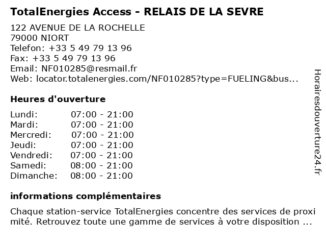 Termes de recherche pour TotalEnergies Access - RELAIS DE LA SEVRE:relais, la, de, access, total, sèvre, gas station, station service, tankstelle, totalenergies |