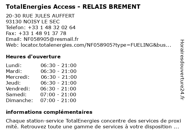 Termes de recherche pour TotalEnergies Access - RELAIS BREMENT:relais, access, total, brement, gas station, station service, tankstelle, totalenergies |