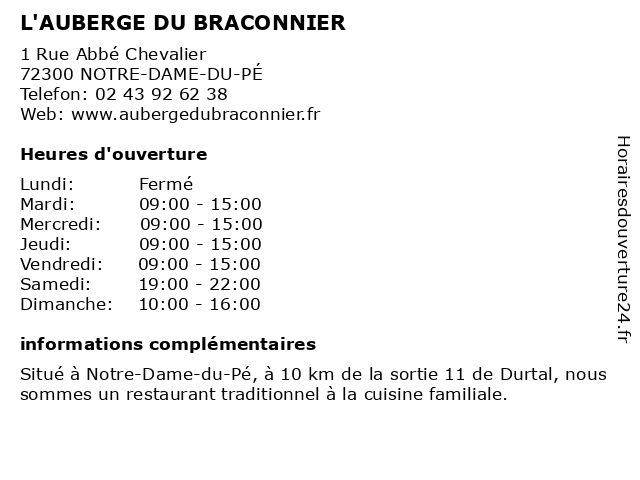 | Lundi | Fermé |