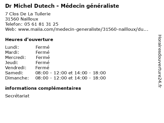 | Samedi | 08:00-12:00 et 14:00-18:00 |