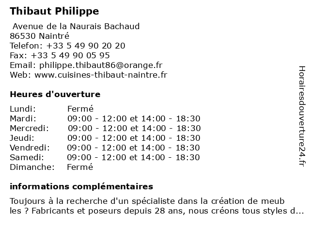 | Samedi | 09:00-12:00 et 14:00-18:30 |
