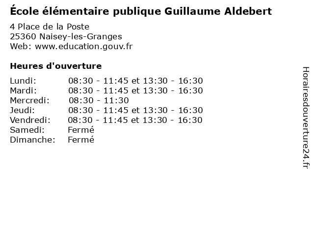| Mardi | 08:30-11:45 et 13:30-16:30 |