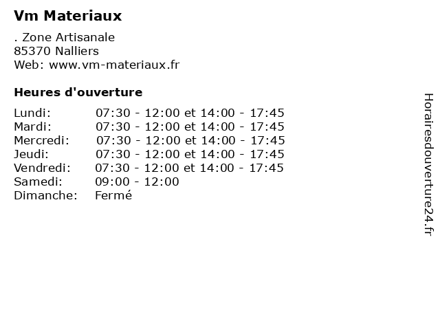 1 Vm Materiaux (Distance: 8,52 km) . Rue Denis Papin, 85400 Lucon constructives, equipements, materiaux, services, vm 2 Vm Materiaux (Distance: 9,43 km) . Luçon, 85000 La Roche sur Yon constructives, equipements, materiaux, services, vm 5 Charier TP (Distance: 24,45 km) rue du 8 mai, 85450 Champagné-les-Marais carrieres, charier, déconstruction, désamiantage, materiaux, recyclage, terrassement, tp 6 Vm Materiaux (Distance: 39,89 km) . Rue Elie Barreau, 17000 La Rochelle constructives, equipements, materiaux, services, vm |