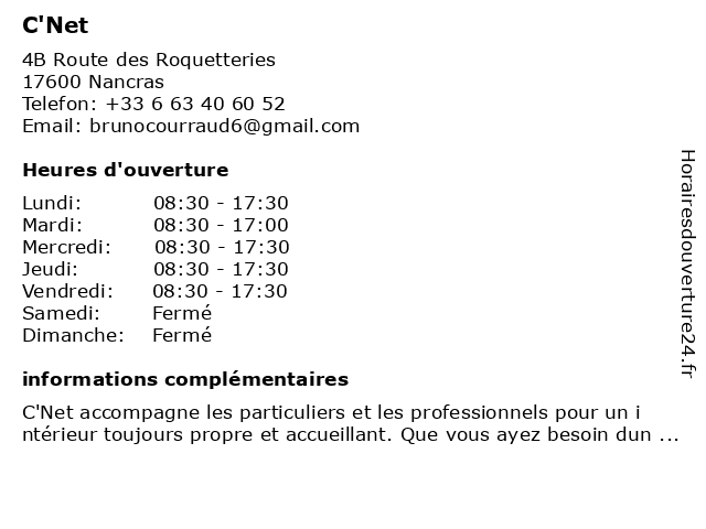 3 Net Plus (Distance: 53,34 km) 2 rue Robert Geffré, 17000 La Rochelle bureaux, entretien, locaux, net, nettoyage, plus, service 4 Net Plus (Distance: 53,34 km) 2 Rue Robert Geffré, 17000 La Rochelle bureaux, entretien, locaux, net, nettoyage, plus, service 6 |