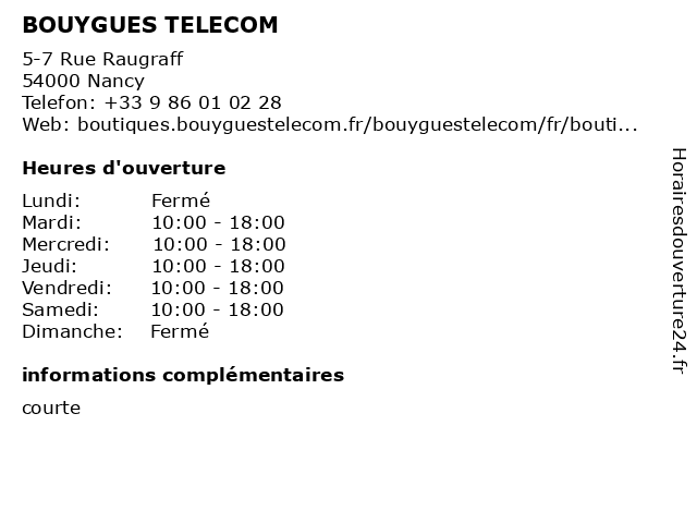 Horaires d'ouverture |