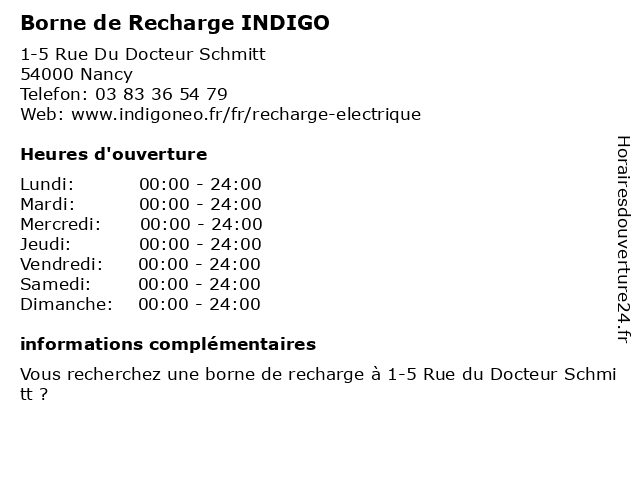 1 Borne de Recharge INDIGO (Distance: 0,11 km) 11 Rue Des 4 Églises, 54000 Nancy borne, de, indigo, recharge 2 Borne de Recharge INDIGO (Distance: 0,36 km) 22 Rue Grand Rabbin Haguenauer, 54000 Nancy borne, de, indigo, recharge 6 |
