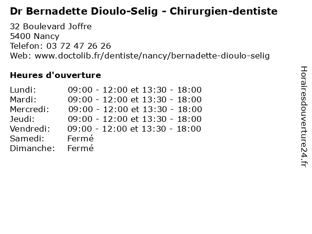 | Lundi | 09:00-12:00 et 13:30-18:00 |