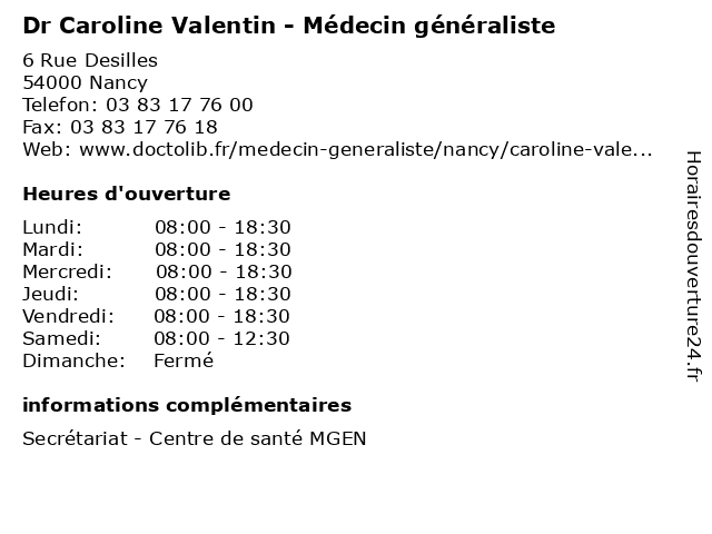 1 Dr Caroline Bary - Médecin généraliste (Distance: 0,00 km) 6 Rue Desilles, 54000 Nancy bary, caroline, consultation, docteur, dr, généraliste, med, medecine, medical, médecin, traitement 3 Madame Caroline Raison (Distance: 0,70 km) 14 Rue Giorne Viard, 54000 Nancy caroline, madame, raison, restaurants 4 Dr Caroline Husson - Orthodontiste (Distance: 1,43 km) 13 Place Commanderie, 54000 Nancy caroline, dentaire, dr, husson, implantologie, orthodontiste, parodontologie 6 Maître Caroline Stando - Avocate (Distance: 2,16 km) 198 rue Jeanne d'Arc, 54000 Nancy avocat, avocate, caroline, droit, juridictionnelle, maître, négociation, stando |