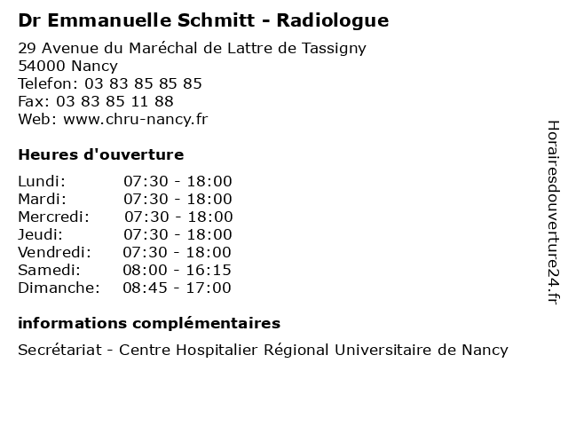 | Vendredi | 07:30-18:00 |