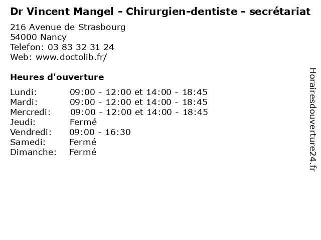 | Lundi | 09:00-12:00 et 14:00-18:45 |