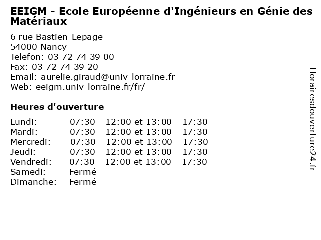 | Lundi | 07:30-12:00 et 13:00-17:30 |