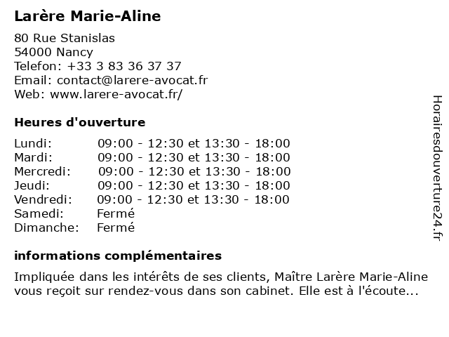| Lundi | 09:00-12:30 et 13:30-18:00 |