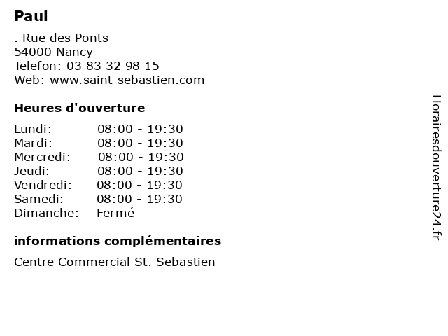 | Lundi | 08:00-19:30 |